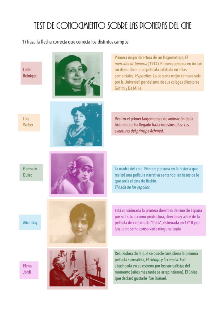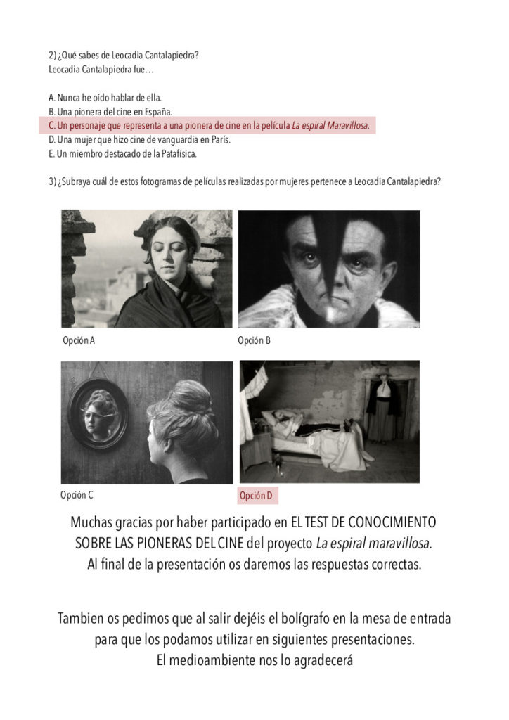 Si has asistido a la presentación del proyecto La espiral Maravillosa de Isabel Medarde, posiblemente se os habrá entregado un test de conocimiento sobre las pioneras del cine.
